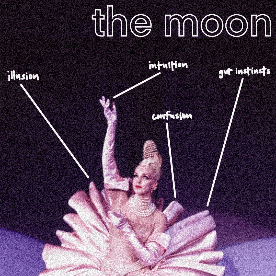 Something that was mentioned here and here that I do feel like I missed touching on — Yes, this card is a call to listen to your gut instincts. But it’s important to note that the reason it’s necessary to be able to trust your intuition in the first place is because there is an element of illusion at play right now. When The Moon comes up in a tarot reading, it’s telling us that something is not quite what it seems. Best to trust your gut instincts over whatever a-little-too-dreamy situation you’re being presented with.